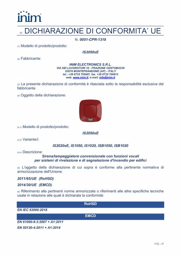 ISB-ISx020-x050 - Konformitätserklärung Nr. 0051-CPR-1318 vom 31/10/2025