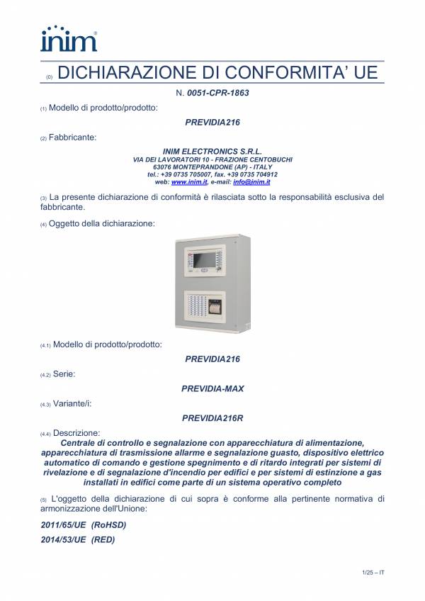 Previdia216 - EU-Konformitätserklärung Nr. 0051-CPR-1863 vom 31/10/2025