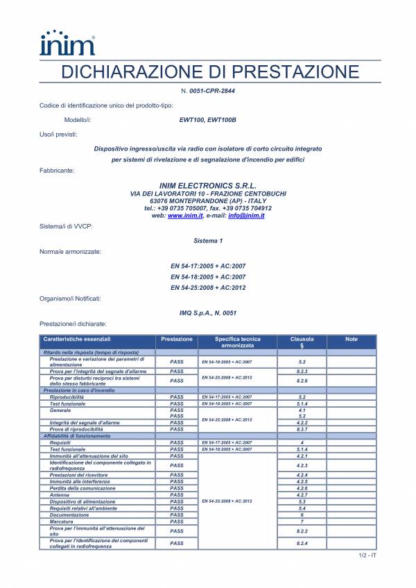 EWT100 - Declaration of Performance N. 0051-CPR-2844 of 03/10/2025