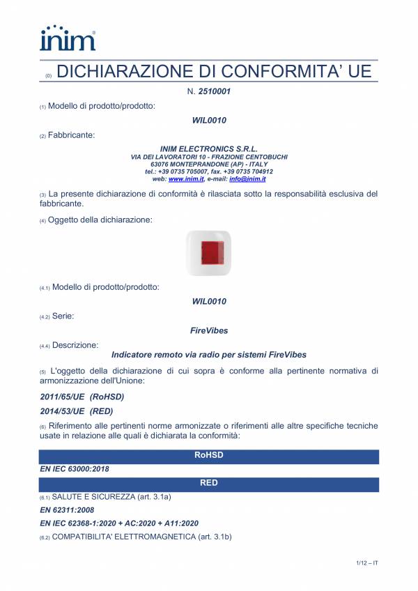WIL0010 - EU Declaration of Conformity N. 2510001 of 03/10/2025