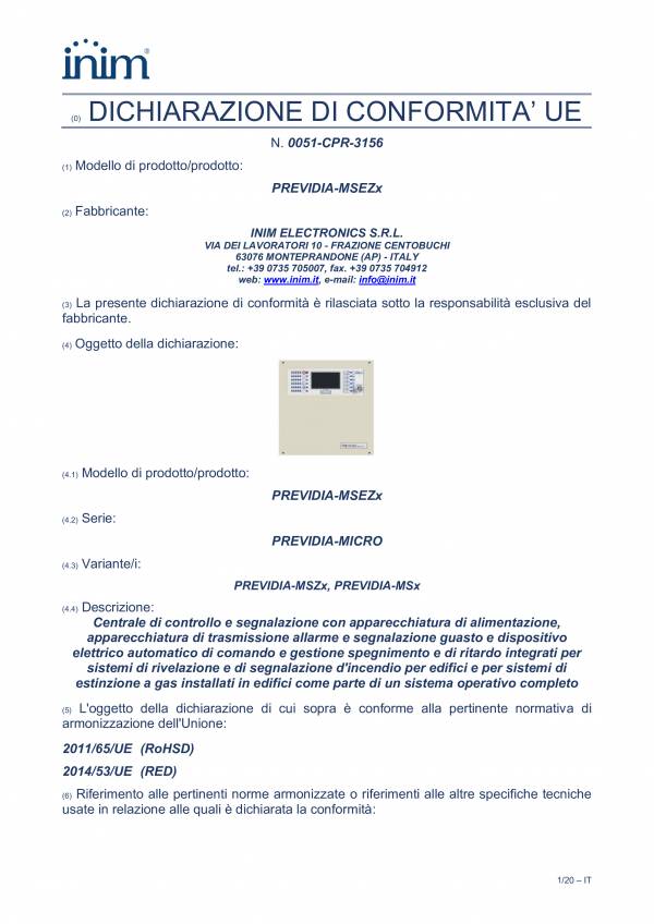 Previdia Micro/S - Declaración de Conformidad UE N. 0051-CPR-3156 de 31/10/2025
