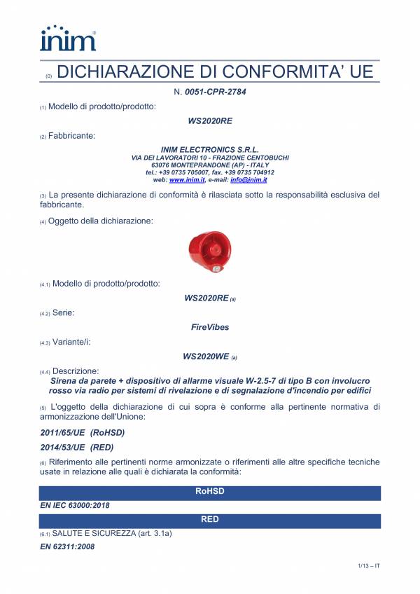 WS2020 - Déclaration de Conformité UE N. 0051-CPR-2784 du 03/10/2025