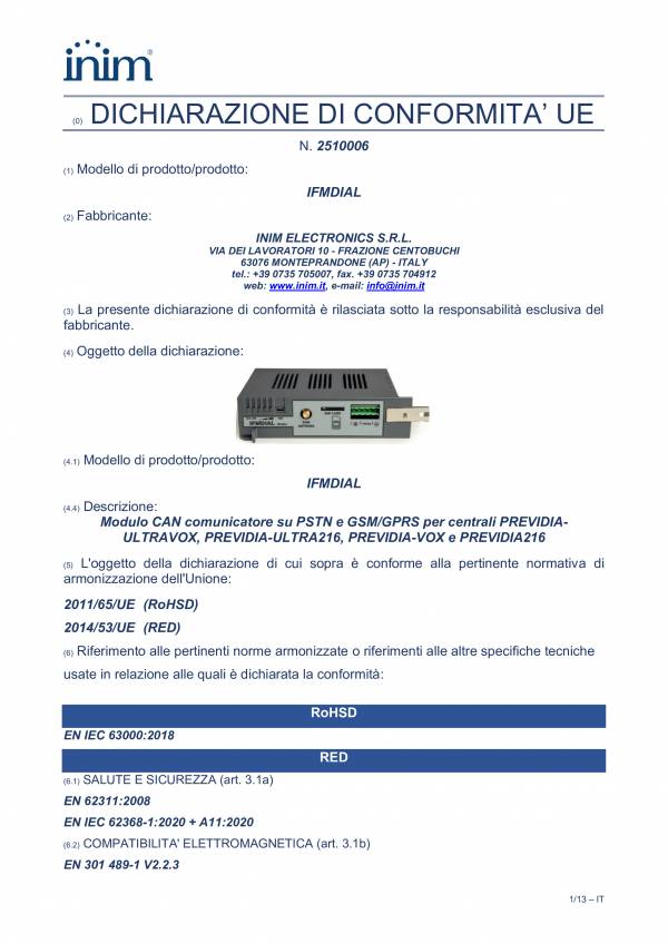 IFMDIAL - Dichiarazione di Conformità UE N. 2510006 del 31/10/2025