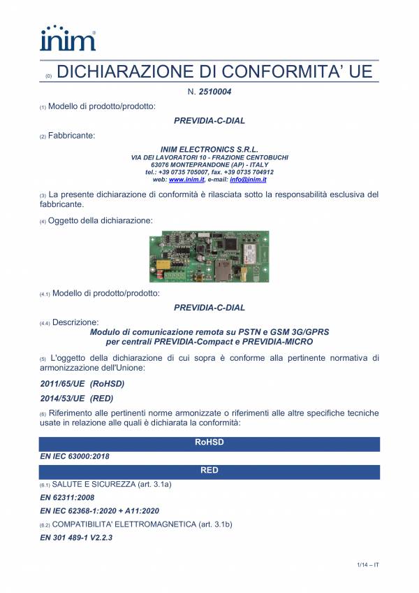 PREVIDIA-C-DIAL - Dichiarazione di Conformità UE No. 2510004 del 31/10/2025