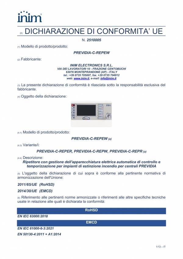 PREVIDIA-C-REPxx - Dichiarazione di Conformità UE No. 2510005 del 31/10/2025