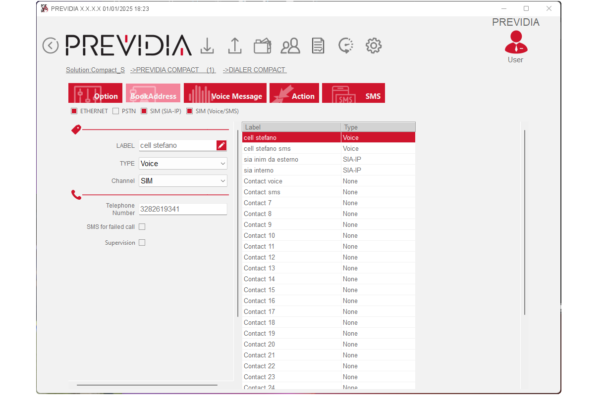 Channel – depending on the contact type, you can select the channel from among the 4 used by PREVIDIA-C-DIAL