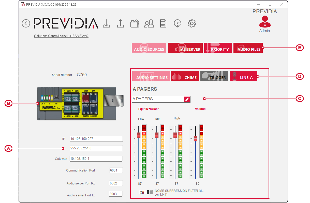 Configuration section of the audio sources connected to the IFAMEVAC module |