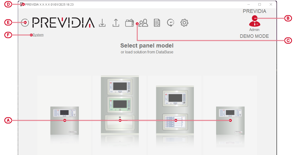 Once a control panel reading has been done or a solution previously saved in the database has been opened, the “DEMO MODE” indication will be removed and the system will be in operating mode. In this mode it will be possible to write data to the control panels but it will no longer be possible to manually add hardware elements.