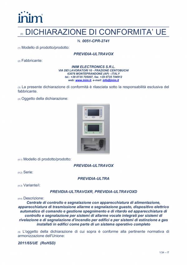 Previdia-Ultravox - Declaração de Conformidade UE N. 0051-CPR-2741 de 31/10/2025