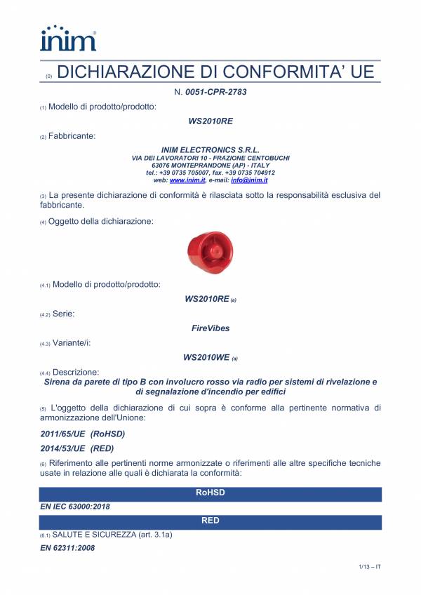 WS2010 - Declaração de Conformidade UE N. 0051-CPR-2783 de 03/10/2025